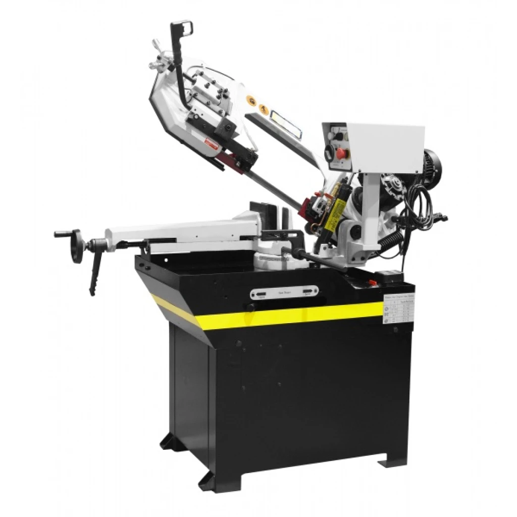 В рабочей зоне резания полотно точно ведется двумя направляющими головками. Станок имеет поворот губок тисков, для пиления под углом необходимо изменять угол установки тисков. Высота полотна 27мм позволяет пилить c высокой точностью и параллельностью полые и профильные заготовки под различными углами, в том числе и сплошные заготовки.