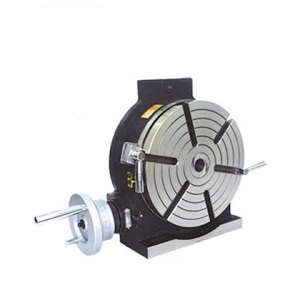 Поворотный стол ( ? 200 мм, конус МТ-3) предназначен для установки и закрепления деталей при обработке их на металлорежущих станках. Поворотный стол фирмы является необходимым приспособлением при выполнении операций кругового фрезерования, при выполнении и обработке различных элементов деталей расположенных через угловые расстояния. Стол состоит из корпуса, планшайбы, червячного колеса и червяка. Вращение осуществляется при помощи червячной пары вручную ручкой маховика. Конструкция корпуса стола позволяет его использование, как в горизонтальном, так и в вертикальном положении, в том числе с применением задней бабки ТS-1,2 для надежного закрепления, при фрезеровании деталей типа «вал». Поворотные горизонтально/вертикальные столы HV применяется в мелко- и среднесерийном производстве, на горизонтальных и вертикальных фрезерных станках для установки одной или более заготовок.